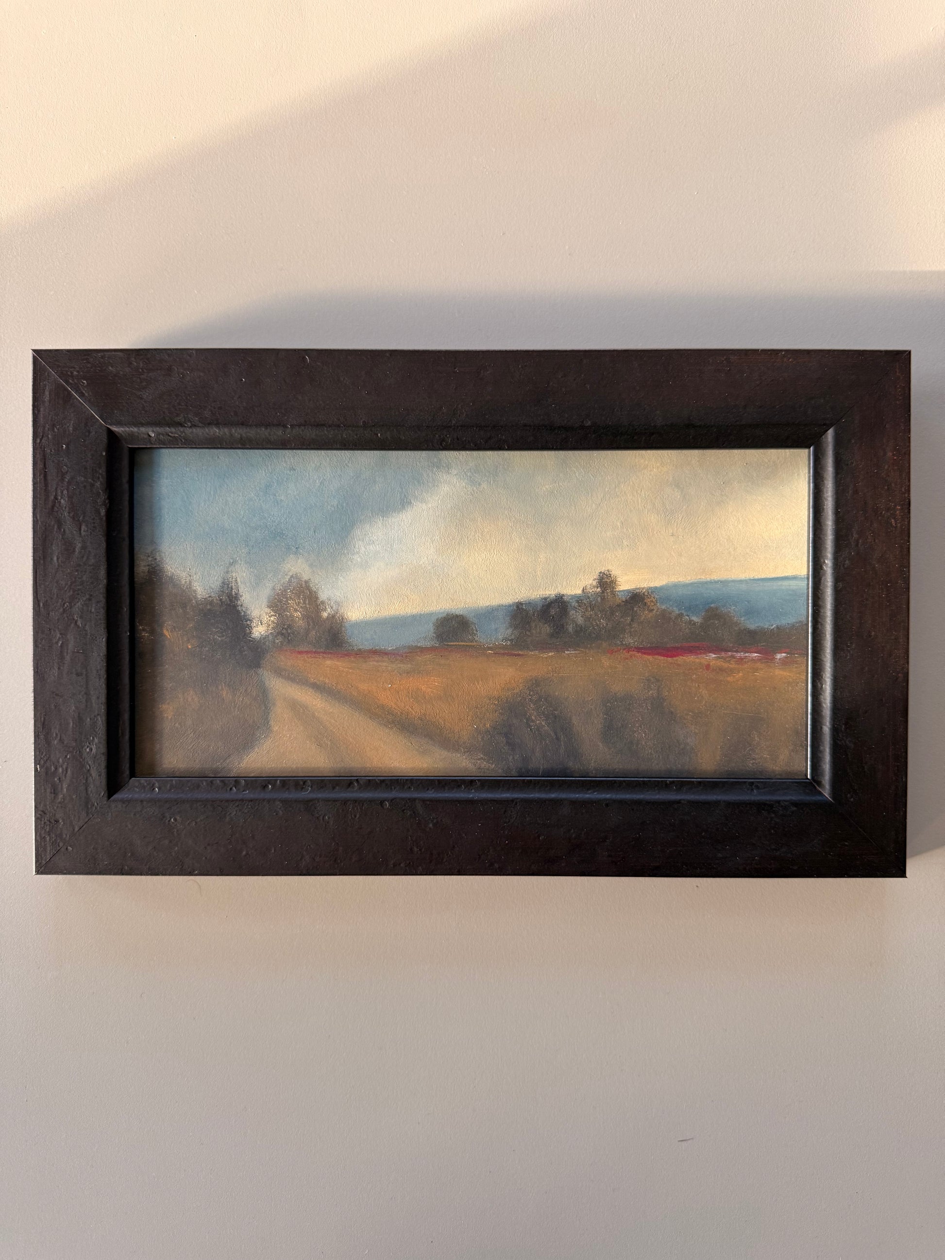 Every painting in the collection is hand-painted using high-quality acrylics, allowing for rich colour depth and subtle atmospheric blending. The compositions draw from real Yorkshire settings,rolling fields, distant tree lines, and soft, transitional skies,expressed in warm, earthy tones that evoke late-afternoon light and the tension between serenity and change.